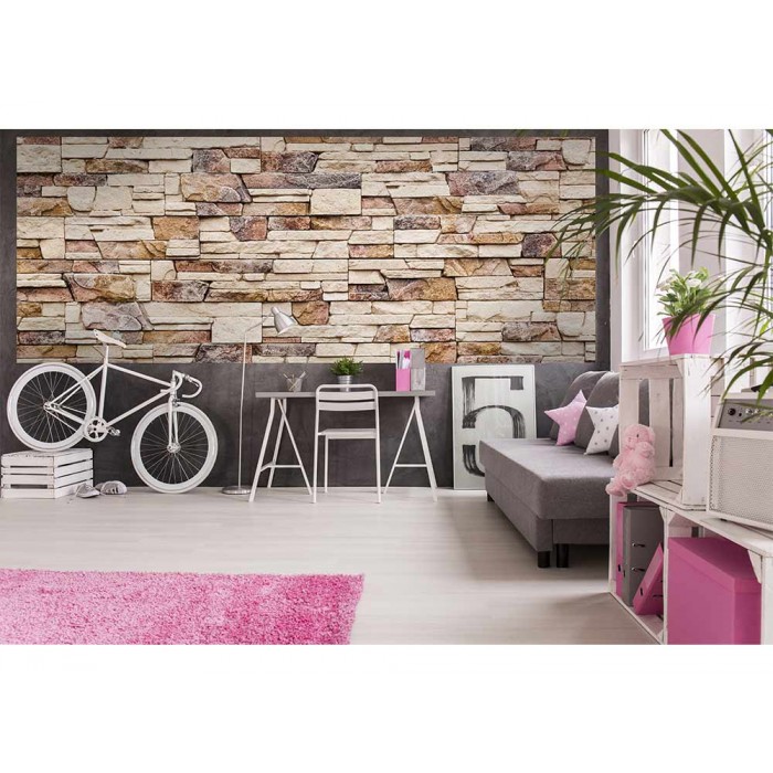 Панорамни флизелинов фототапет Каменна стена 375 x 150 см