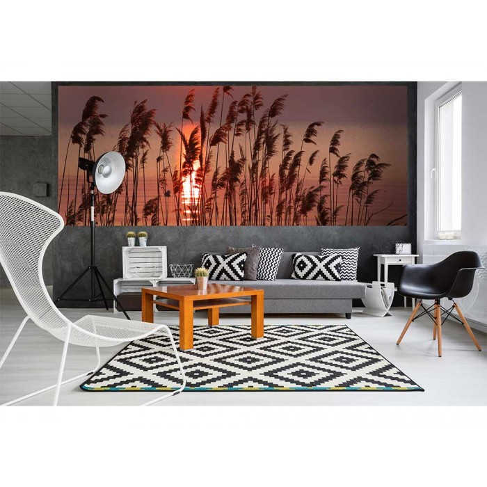 Панорамни флизелинов фототапет Тръстика на езерото 375 x 150 см