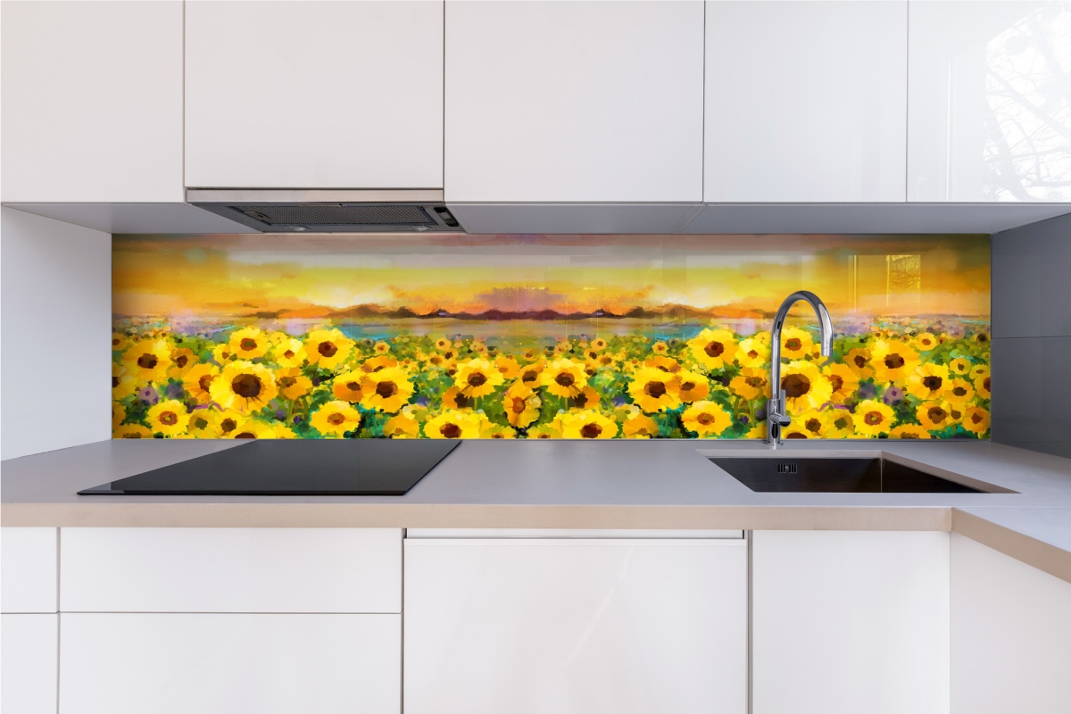 Плексиглас за кухненски гръб Картина със слънчогледи – 240 x 60 см