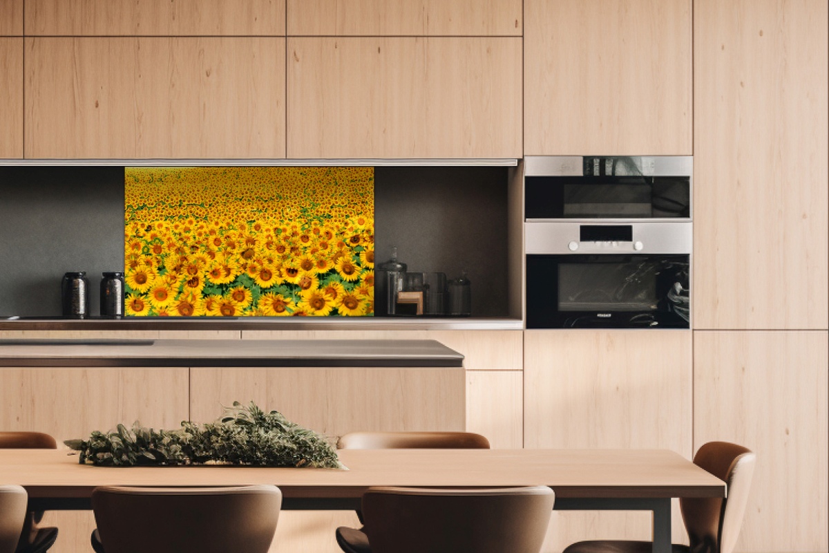 Плексиглас за кухненски гръб Редове със слънчогледи – 100 x 60 см