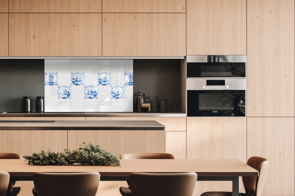 Плексиглас за кухненски гръб Сини плочки – 100 x 60 см