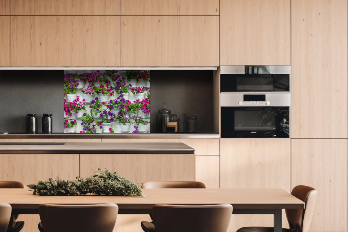 Плексиглас за кухненски гръб Цветя в кутии – 80 x 60 см