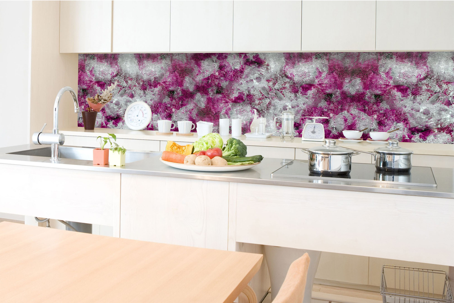 KI-350-284 Самозалепващ фототапет за кухня – Абстрактна лилава картина 350 x 60 см