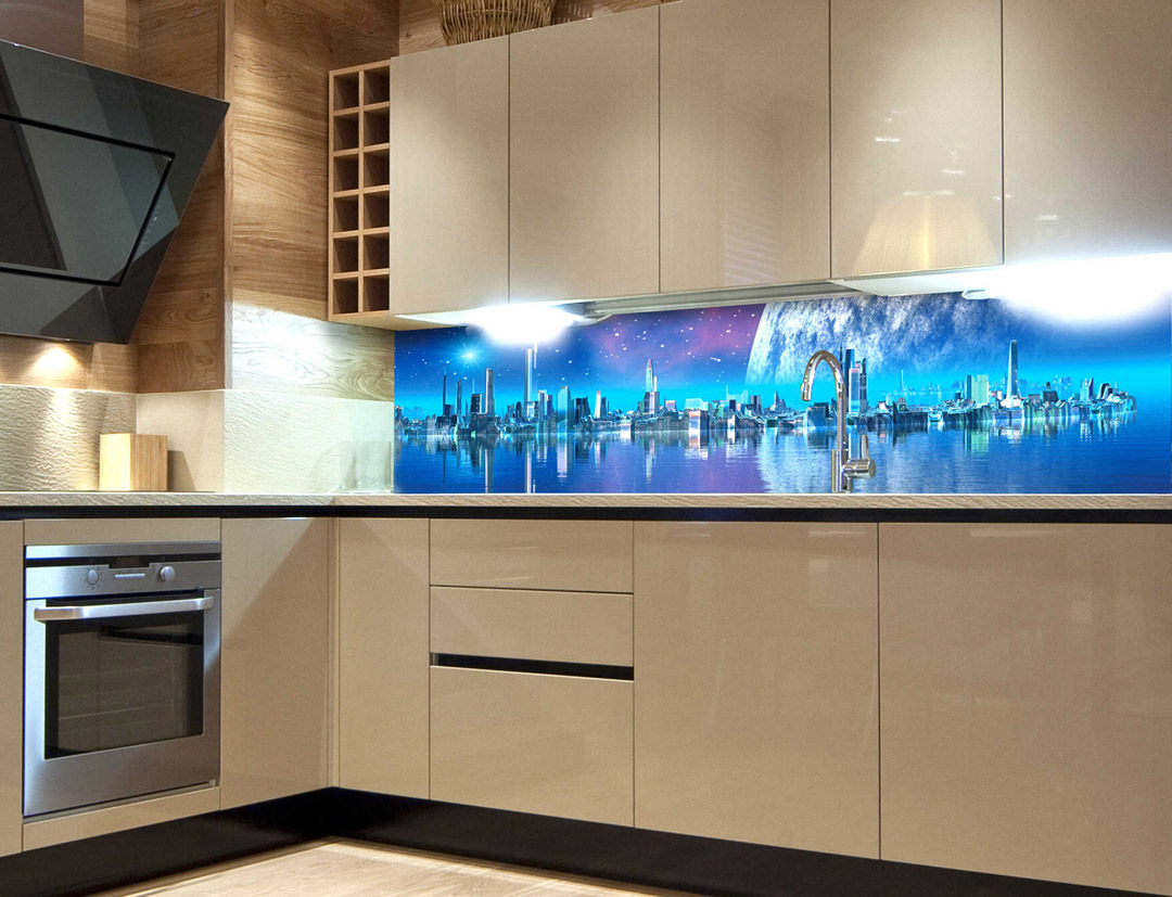 KI-180-036 Самозалепващ фототапет за кухня – Град на бъдещето 180 x 60 см