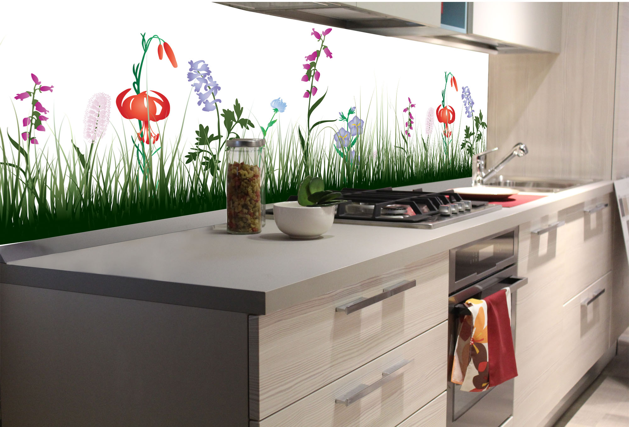 KI-180-182 Самозалепващ фототапет за кухня – Дизайн на поляна 180 x 60 см