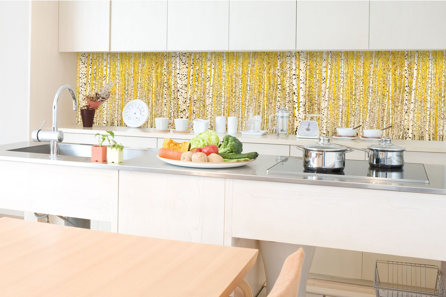 KI-350-197 Самозалепващ фототапет за кухня – Жълта брезова горичка 350 x 60 см