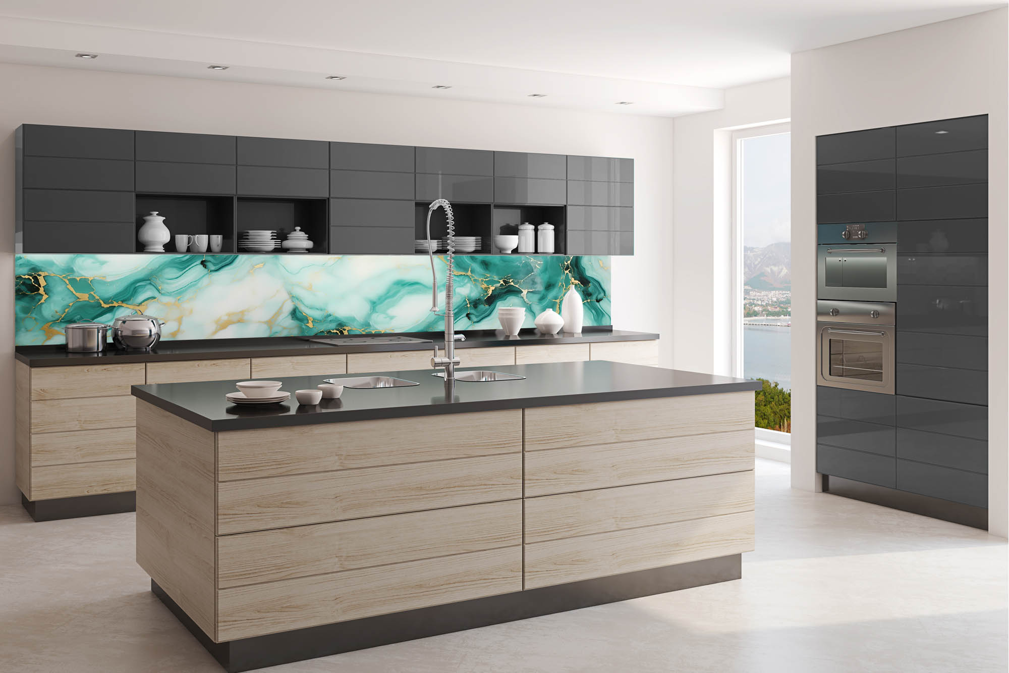 KI-350-208 Самозалепващ фототапет за кухня – Изумруден мрамор 350 x 60 см