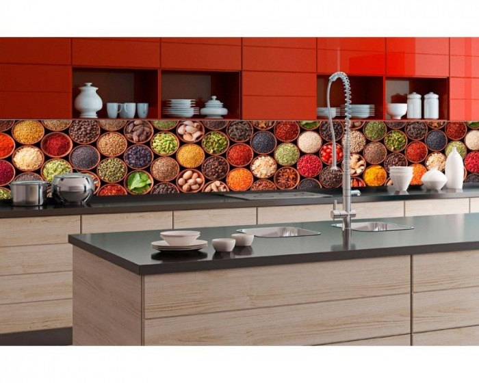 KI-350-075 Самозалепващ фототапет за кухня – Купи с подправки 350 x 60 см