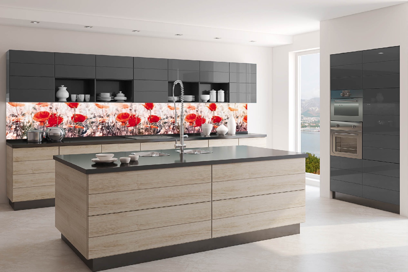 KI-350-171 Самозалепващ фототапет за кухня – Мак 350 x 60 см