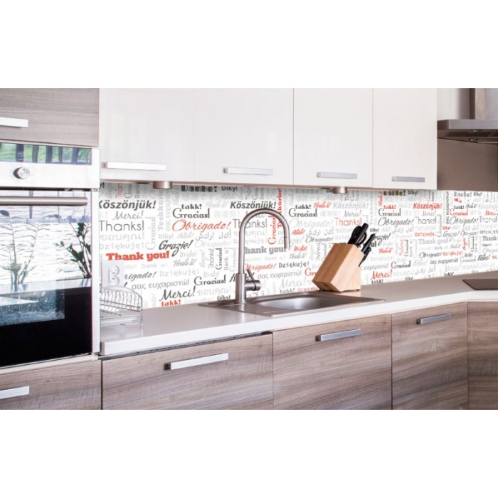 KI-260-094 Самозалепващ фототапет за кухня – Надписи благодаря 260 x 60 см