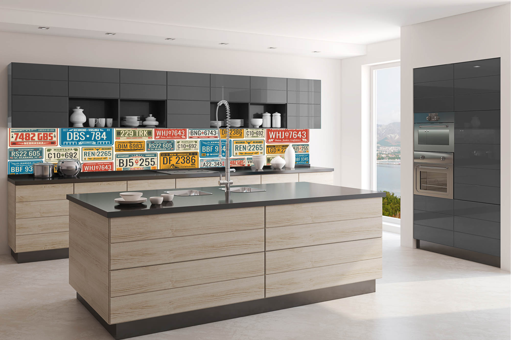 KI-350-227 Самозалепващ фототапет за кухня – Ретро регистрационен номер 350 x 60 см