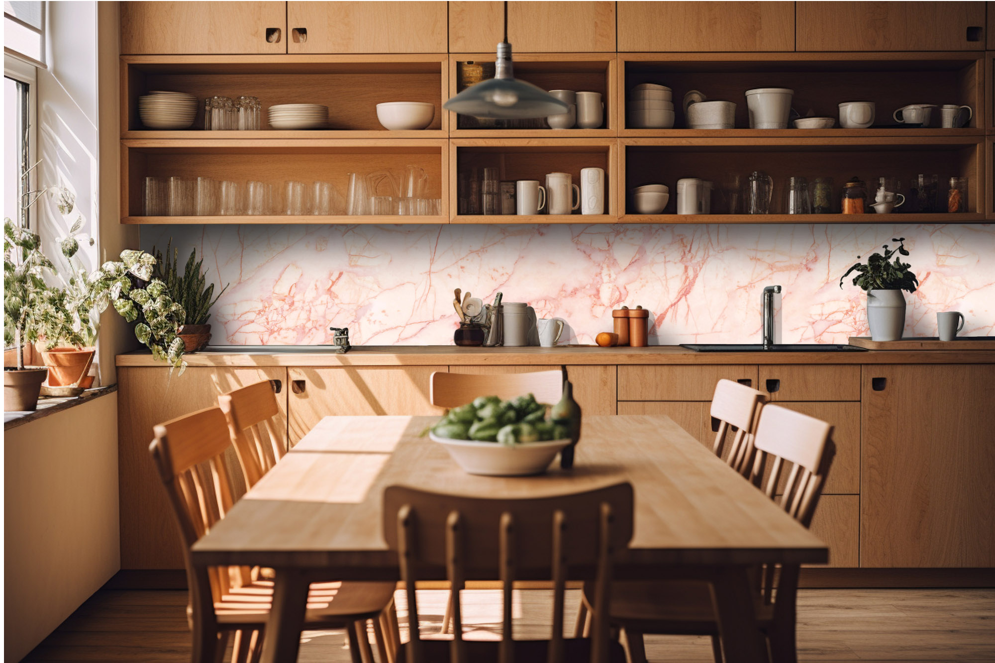 KI-420-157 Самозалепващ фототапет за кухня – Розов мрамор 420 x 60 см