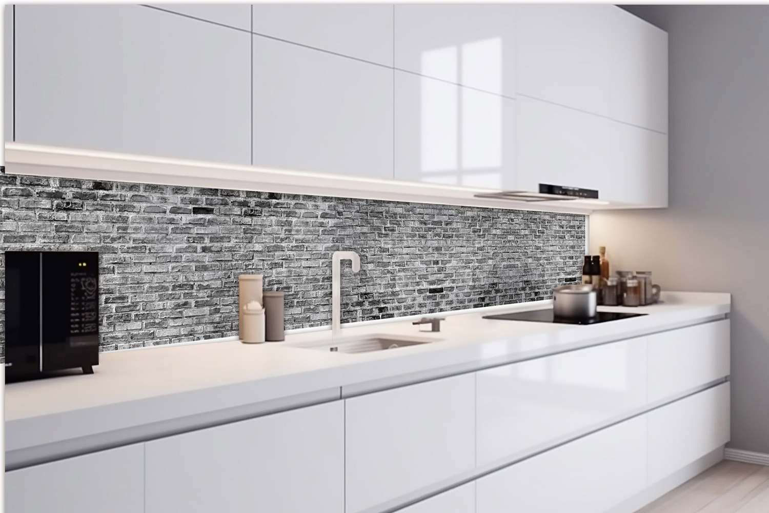 KI-420-300 Самозалепващ фототапет за кухня – Сива тухлена стена 420 x 60 см