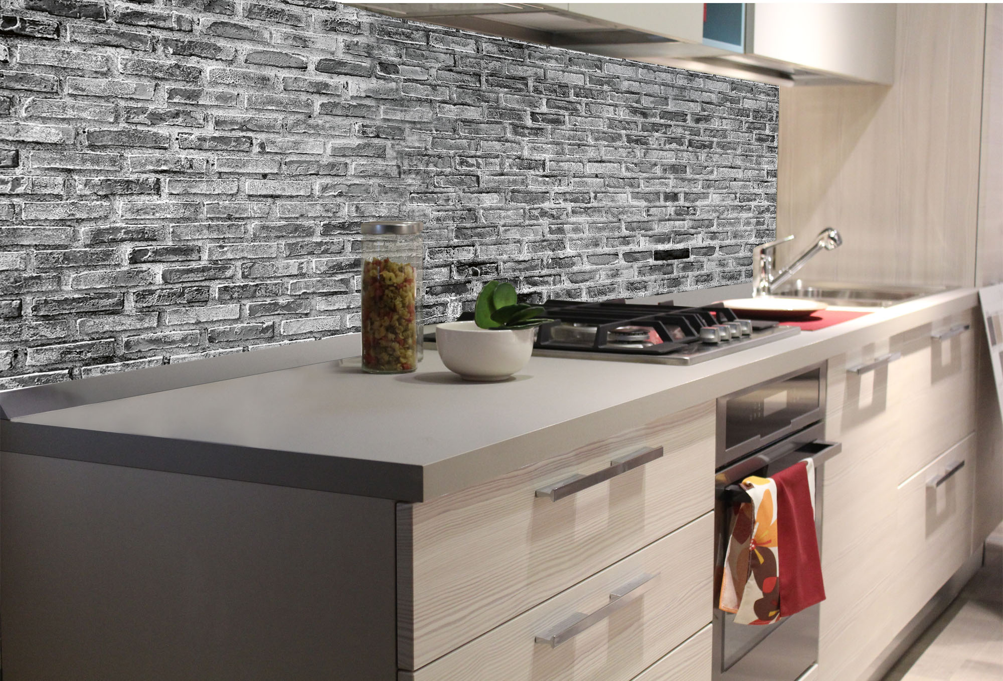 KI-180-300 Самозалепващ фототапет за кухня – Сиво тухлена стена 180 x 60 см