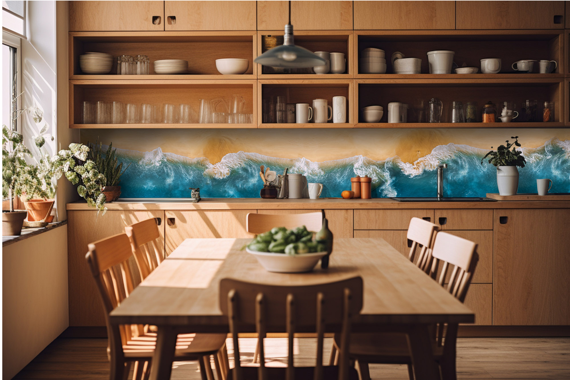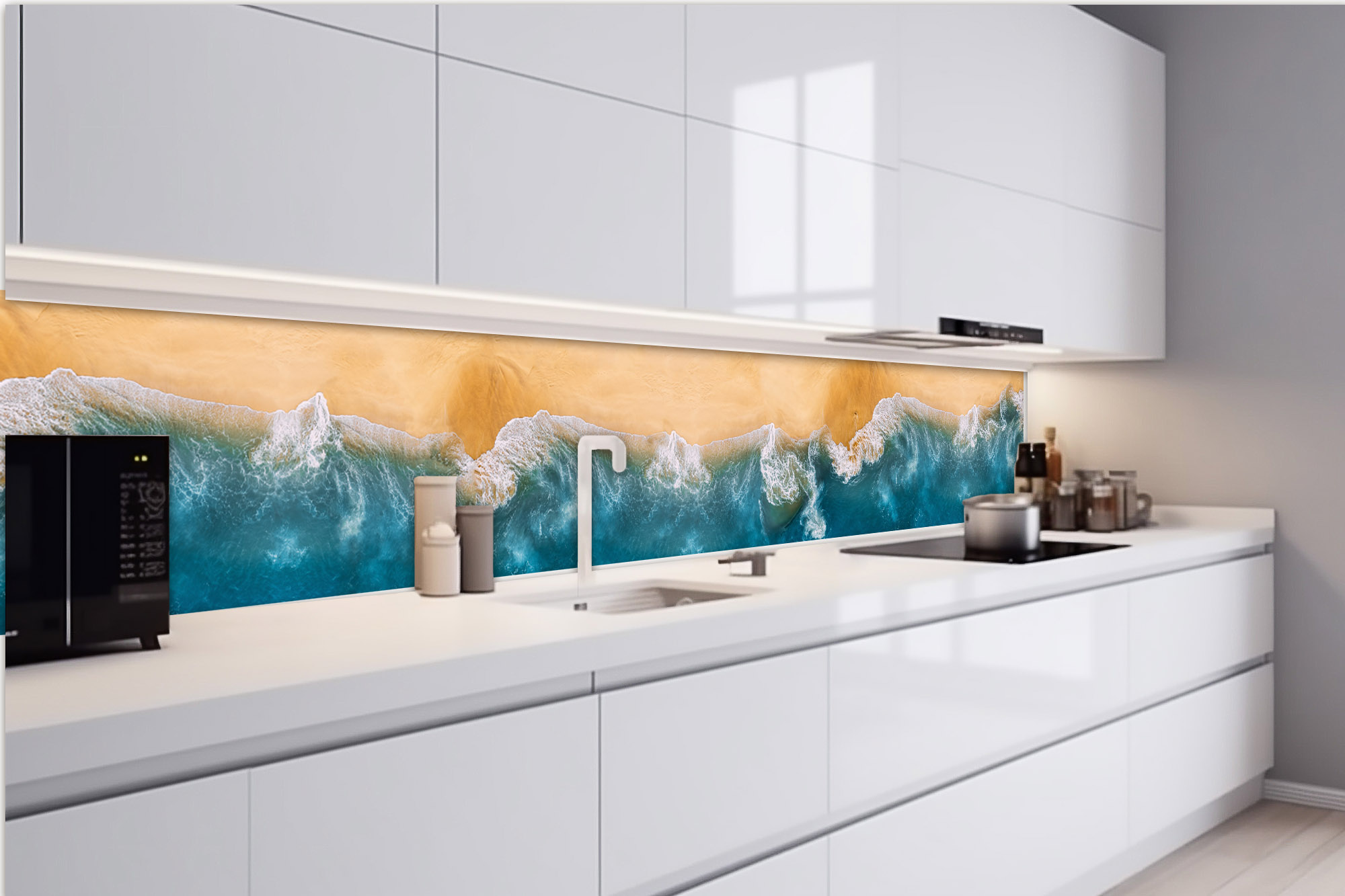 KI-420-163 Самозалепващ фототапет за кухня – Син океан 420 x 60 см