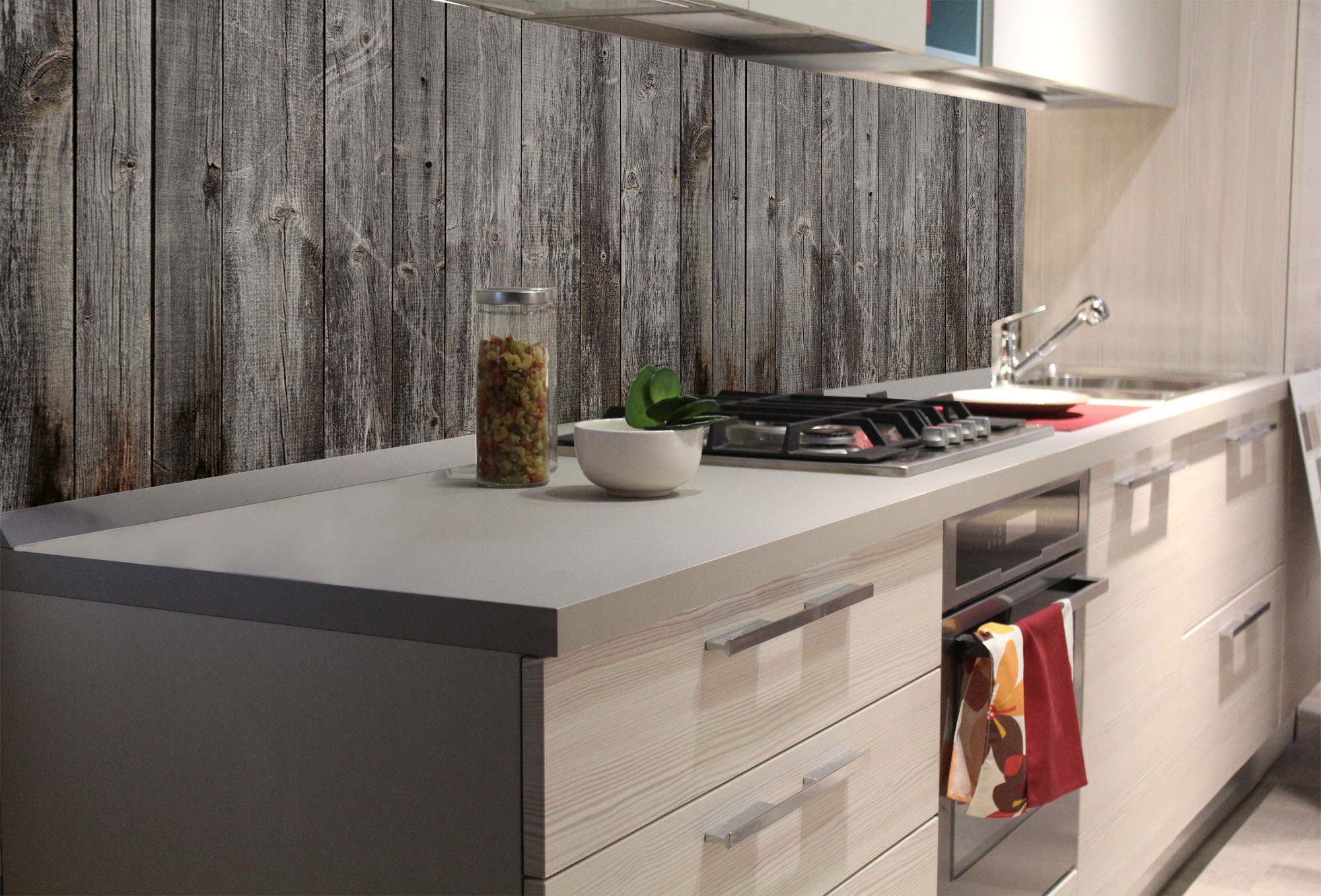 KI-180-289 Самозалепващ фототапет за кухня – Стари дървени летви 180 x 60 см