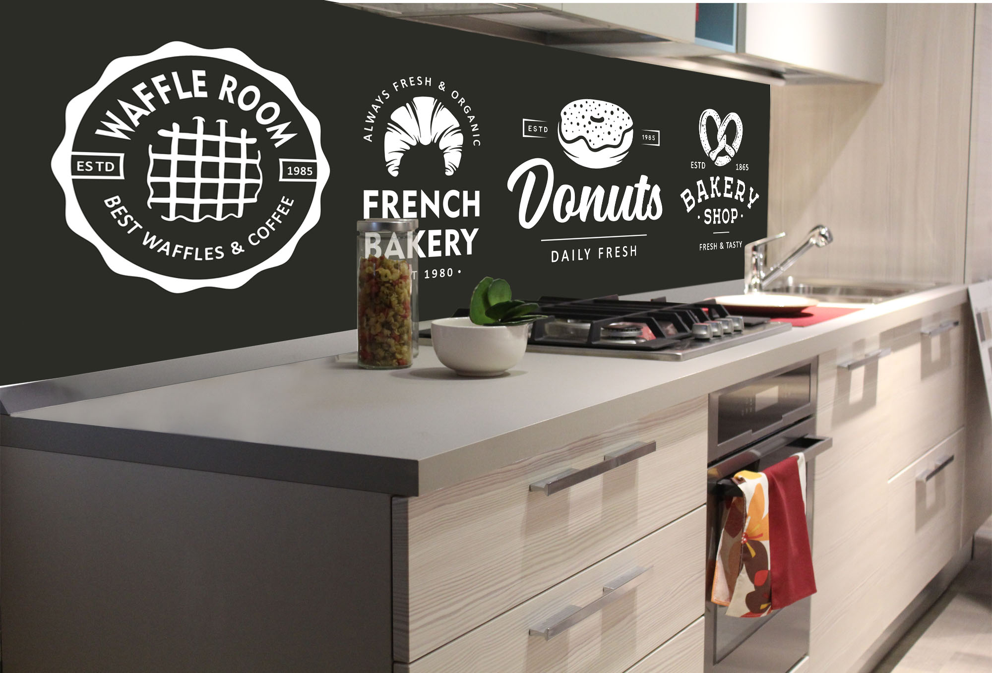 KI-180-223 Самозалепващ фототапет за кухня – Табели за пекарни 180 x 60 см