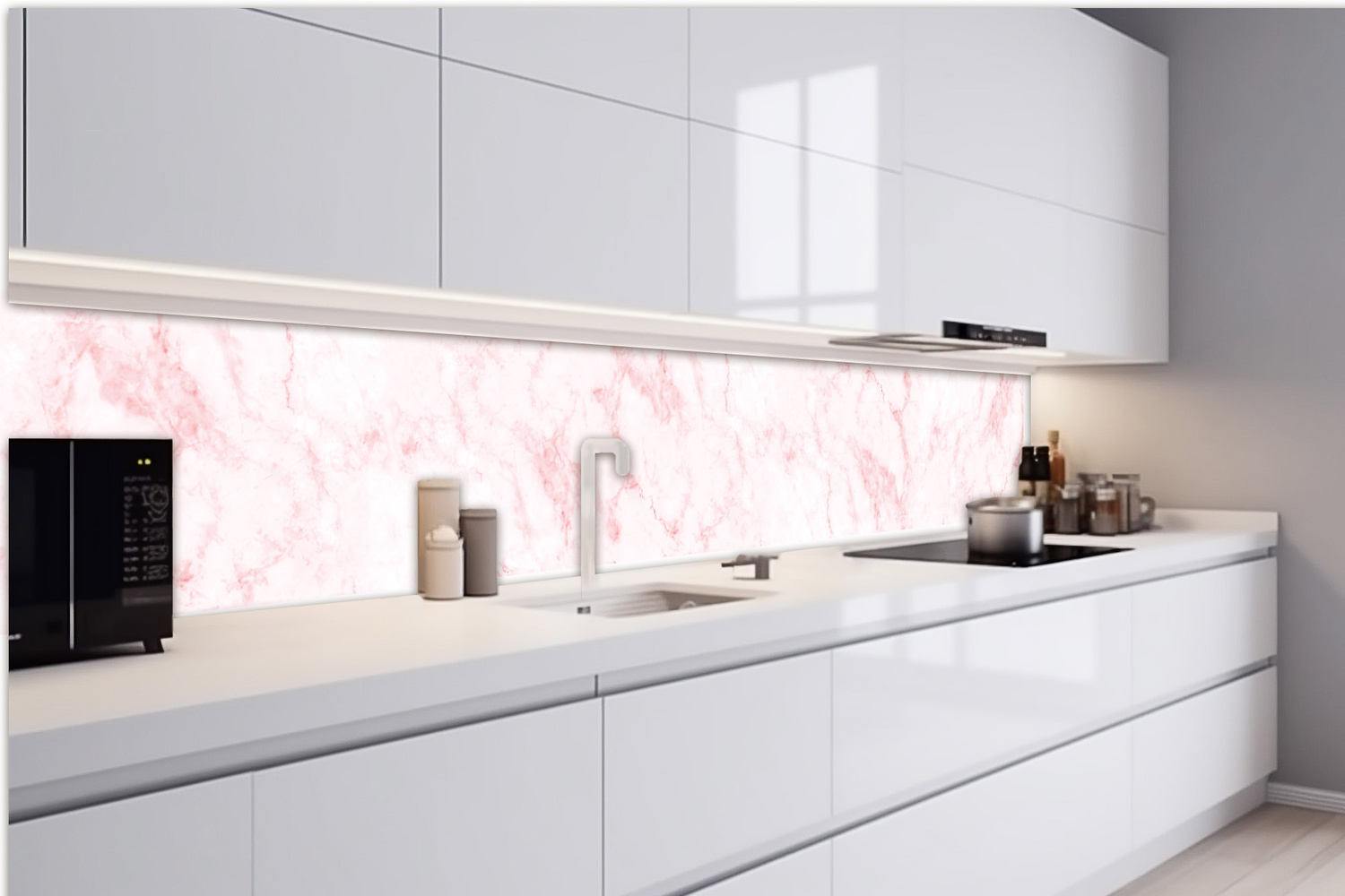 KI-420-276 Самозалепващ фототапет за кухня – Текстура от светлорозов мрамор 420 x 60 см