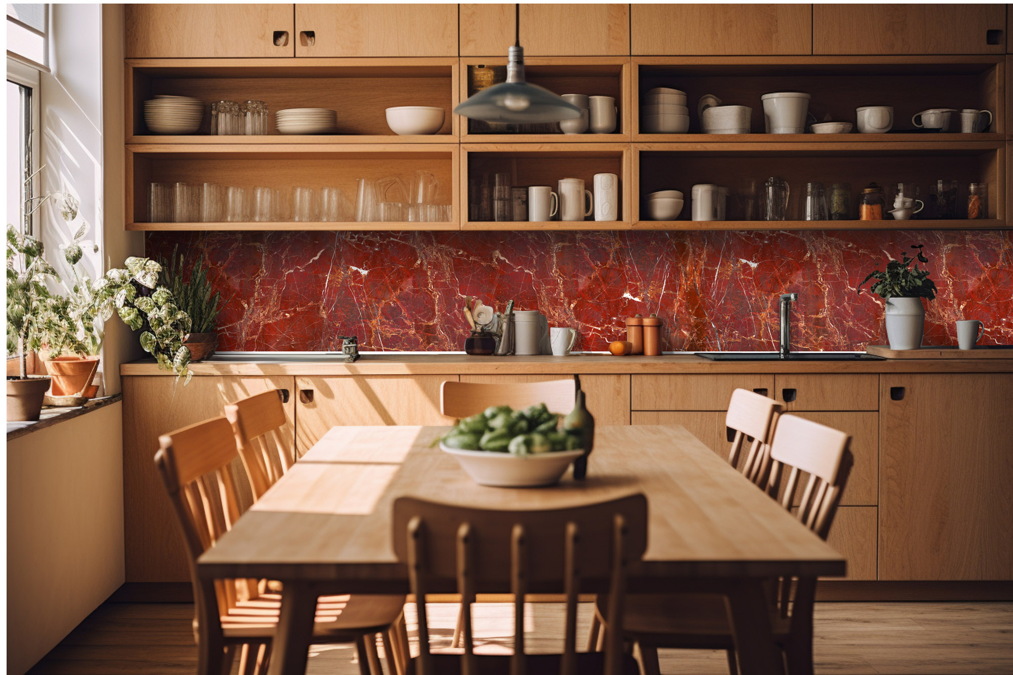 Самозалепващите фототапети за кухня с мотиви на природа, скъпоценни камъни или абстракции придават на вашата кухня не само модерен вид, който озарява цялото пространство, но и правят приятни ценните моменти, прекарани тук със семейството или приятелите. Стикерите за кухня DIMEX LINE се отличават с превъзходно качество.