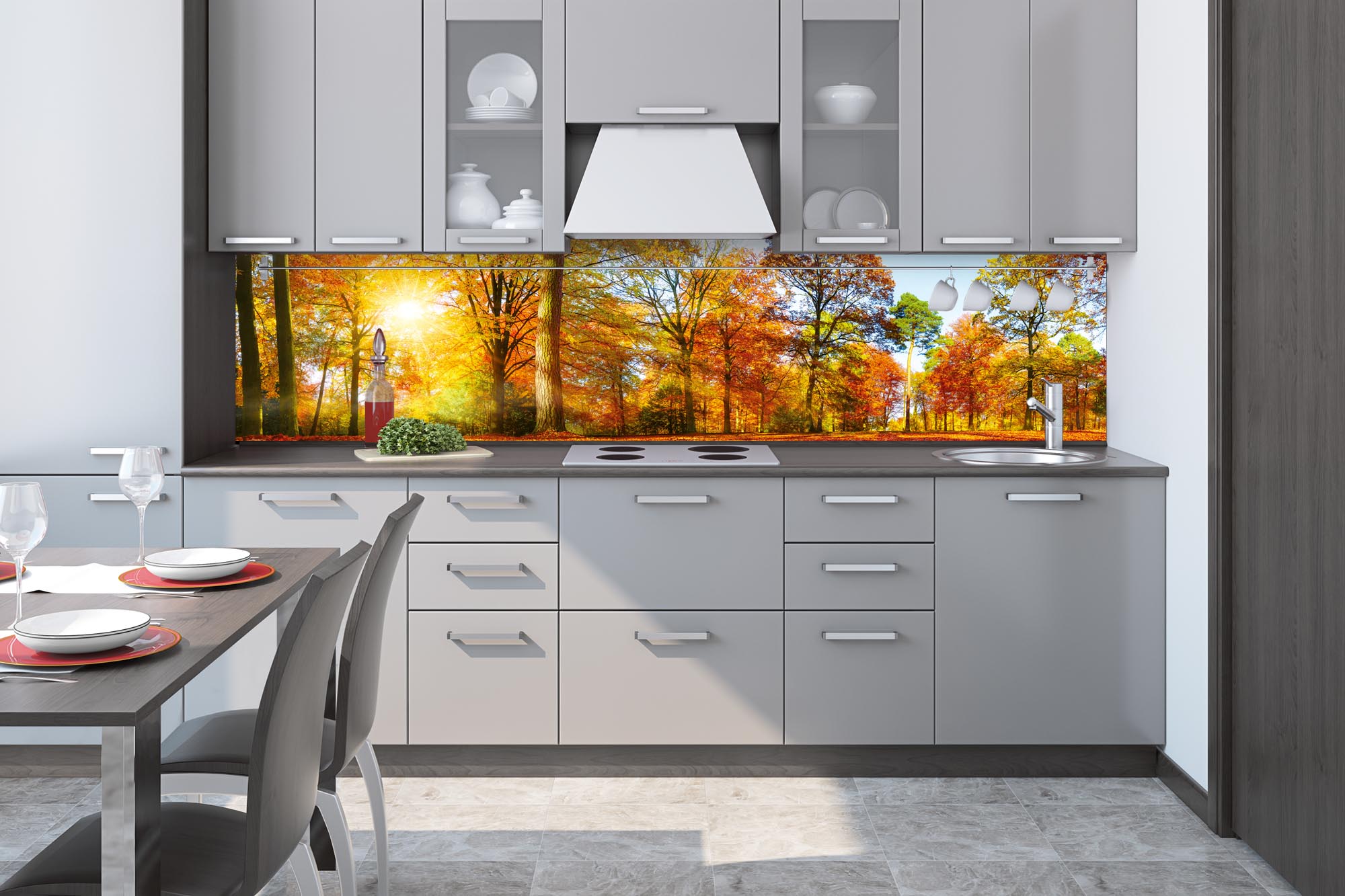 KI-260-188 Самозалепващ фототапет за кухня – Цветна есенна гора 260 x 60 см