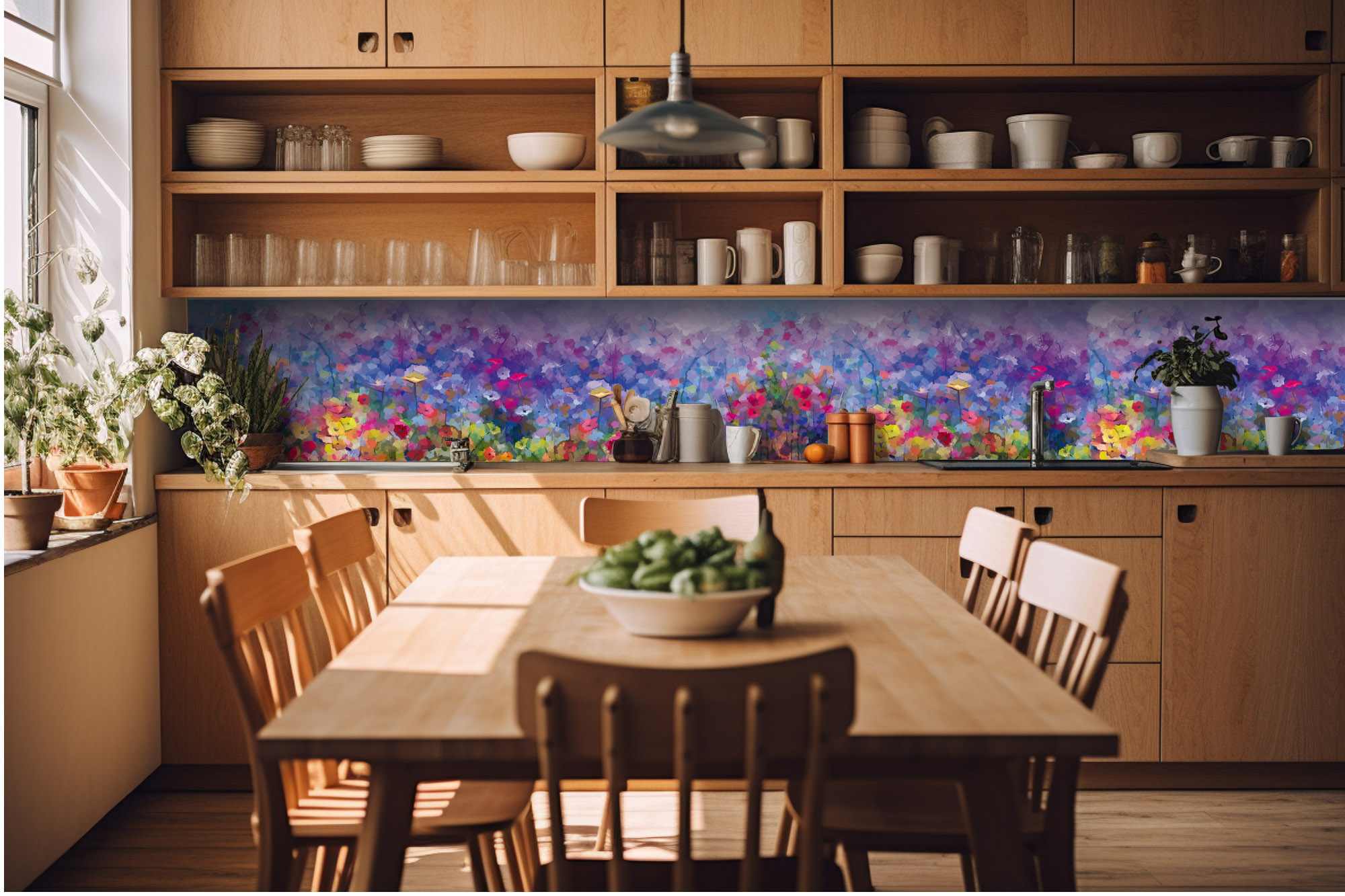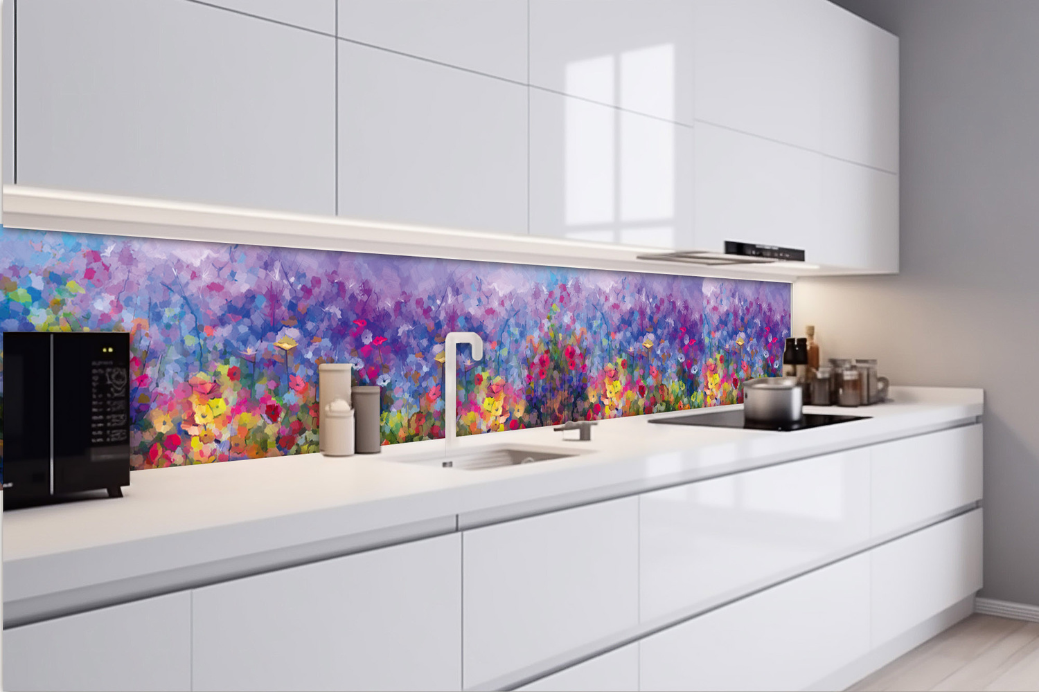 KI-420-217 Самозалепващ фототапет за кухня – Цветна флорална картина 420 x 60 см