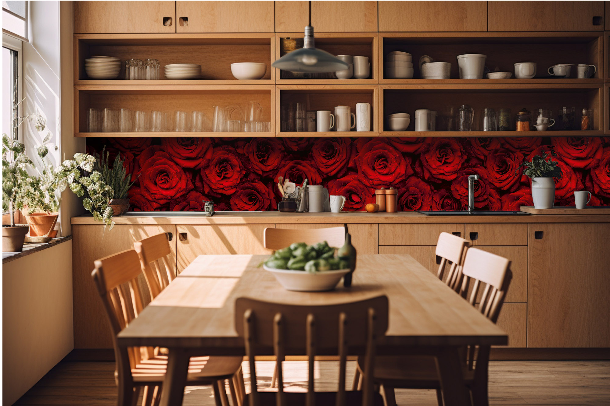 KI-420-132 Самозалепващ фототапет за кухня – Червени рози 420 x 60 см