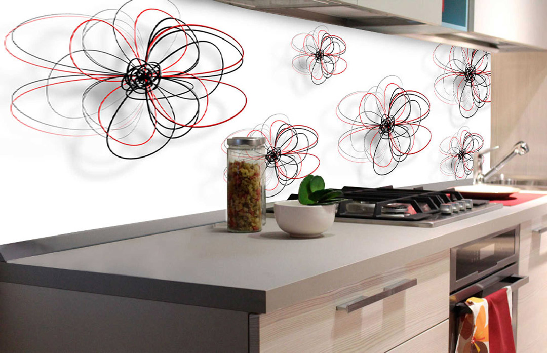 KI-180-098 Самозалепващ фототапет за кухня – Червено-черни цветя 180 x 60 см