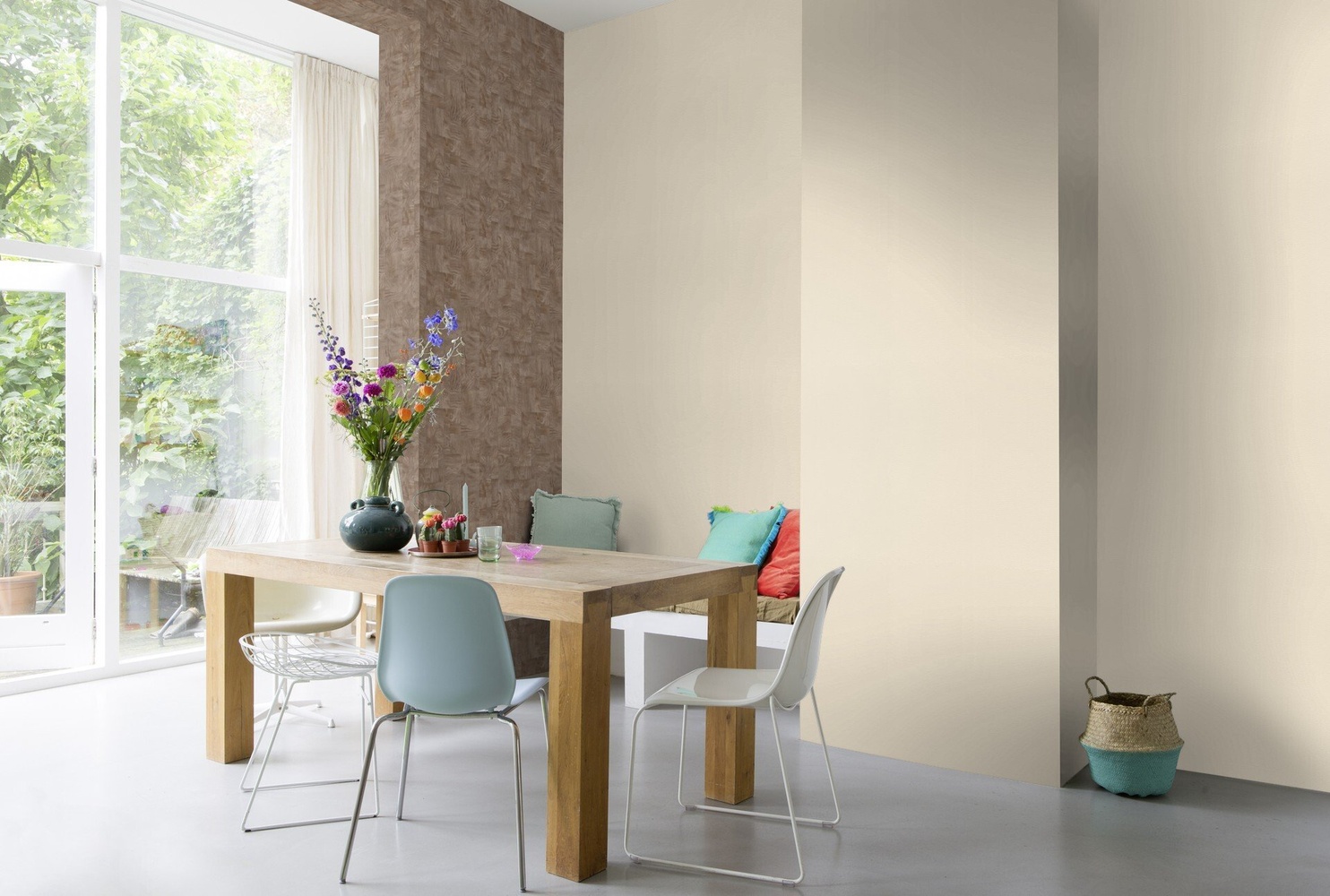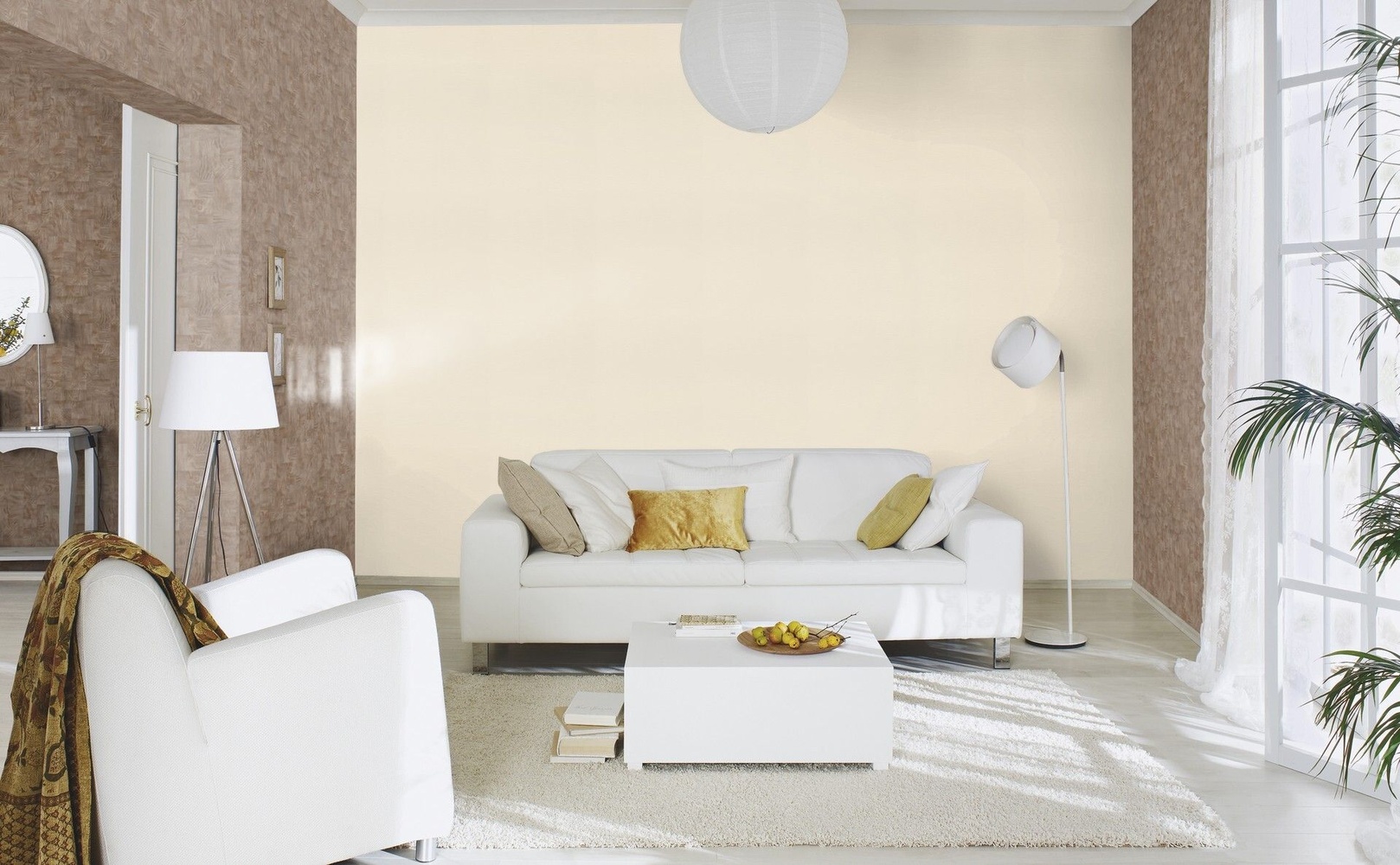 Нанасяйте лепилото върху стената или тапетираната основа с валяк за разнасяне. Остатъците от лепило отстранете възможно най-бързо с помощта на морска гъба. Загладете тапета от центъра към краищата с четка за тапети, за да избегнете въздушни мехурчета. |