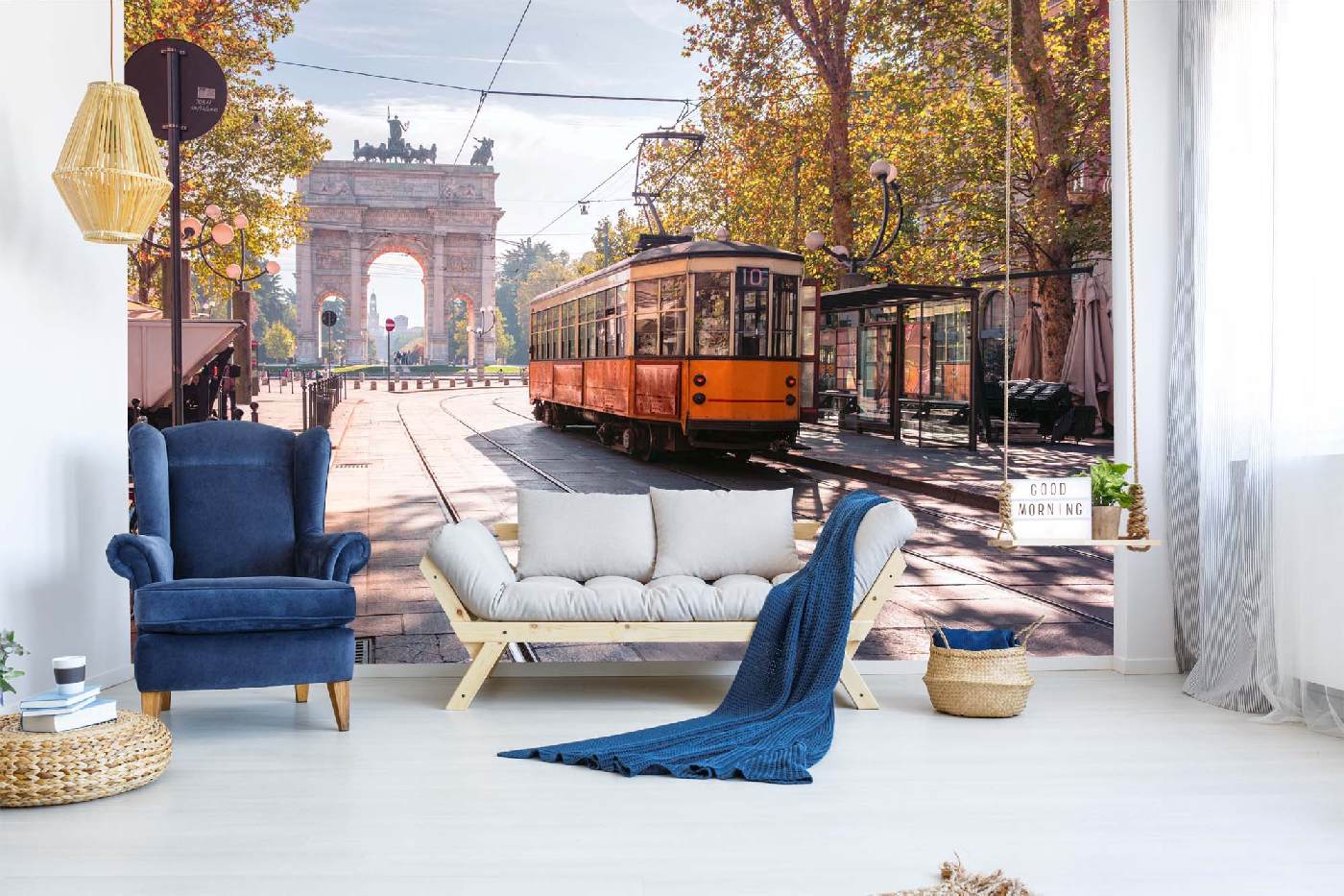 Самозалепваща се флизелинова фототапета Винтидж трамвай 375 x 250 см