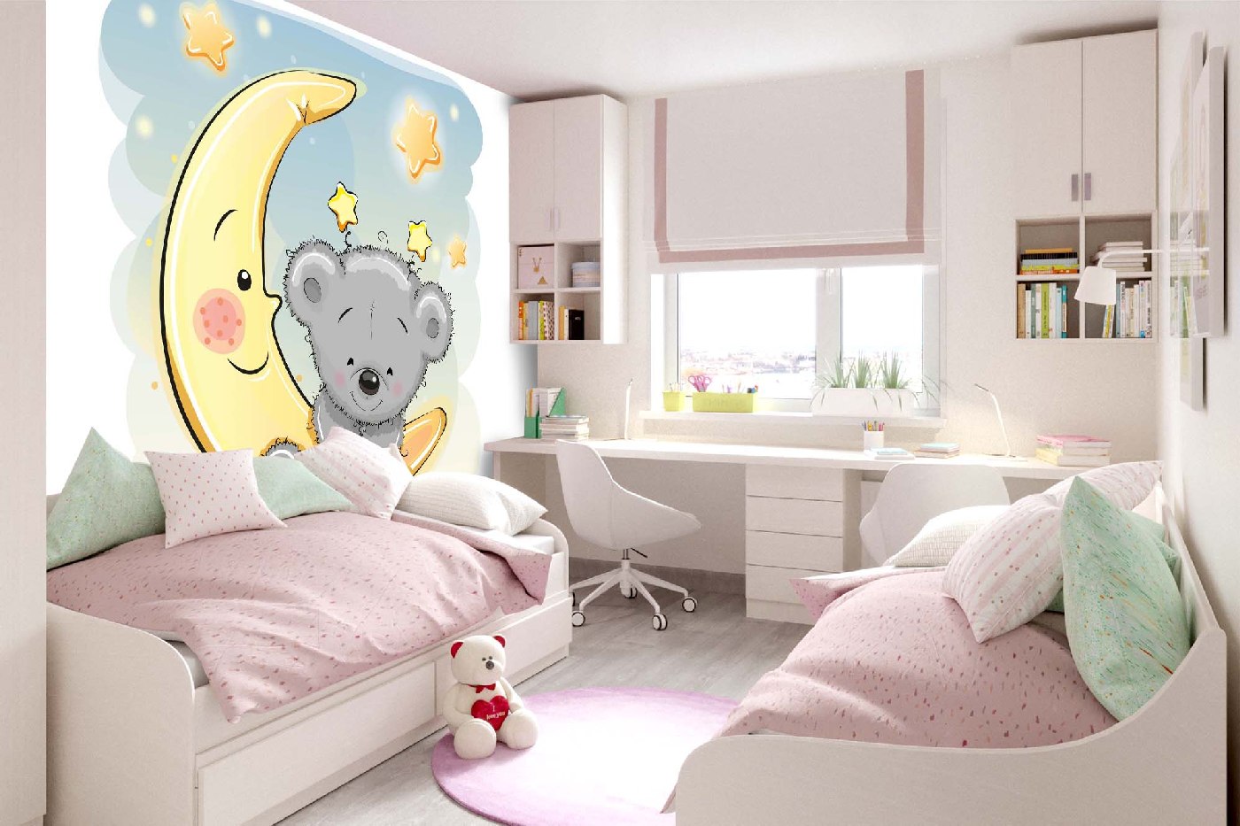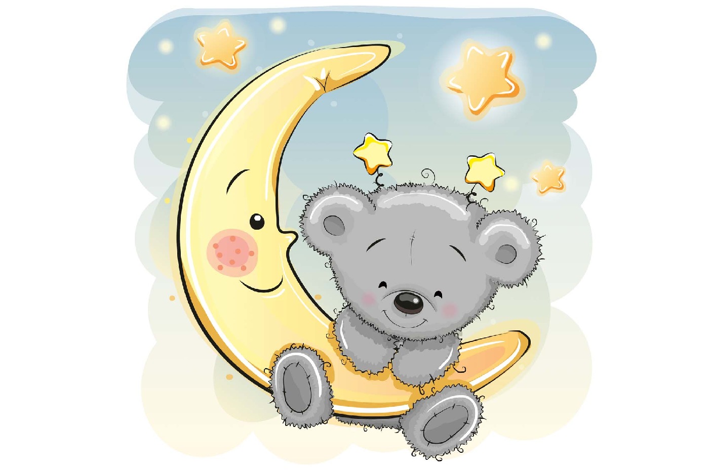 Самозалепваща се флизелинова фототапета Плюшено мече на луната 375 x 250 см
