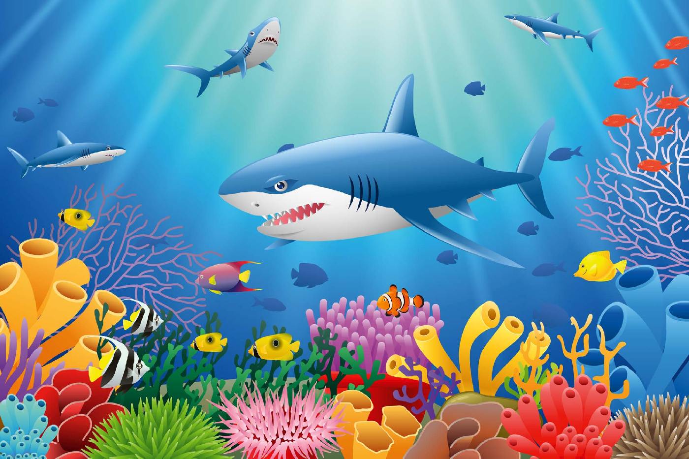 Самозалепваща се флизелинова фототапета Акула с коралов риф 375 x 250 см