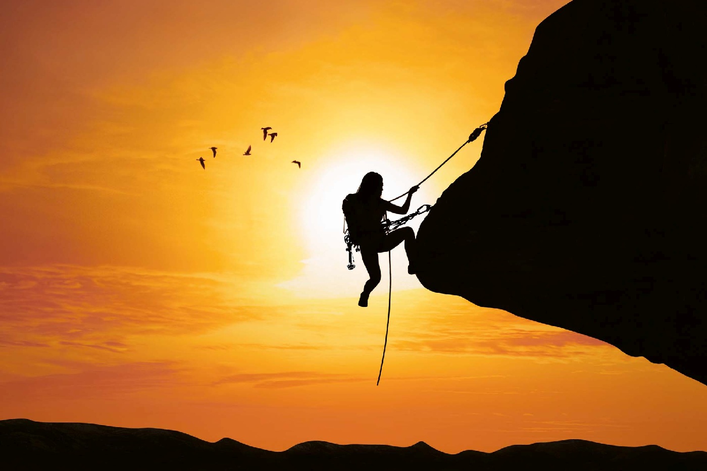 Самозалепваща се флизелинова фототапета Алпинизъм при залез слънце 375 x 250 см