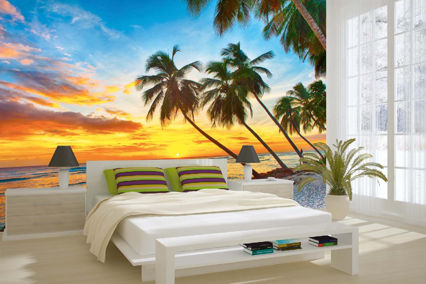 Самозалепваща се флизелинова фототапета Залез на плажа 375 x 250 см