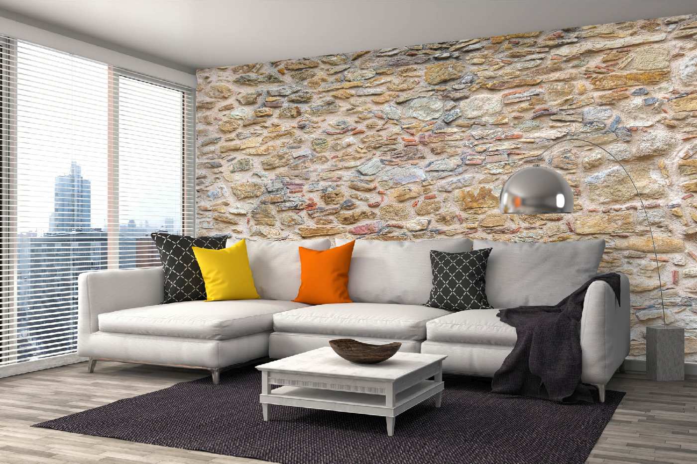 Самозалепваща се флизелинова фототапета Бежова каменна стена 375 x 250 см