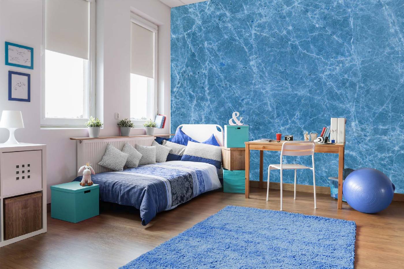 Самозалепваща се флизелинова фототапета Текстура от син мрамор 375 x 250 см