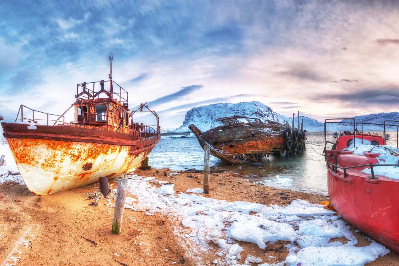 Самозалепваща се флизелинова фототапета Ръждясали рибарски лодки 375 x 250 см