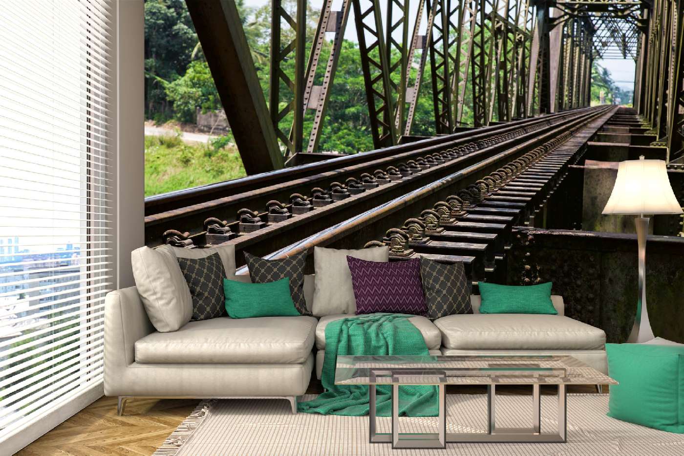 Самозалепваща се флизелинова фототапета Метален железопътен мост 375 x 250 см