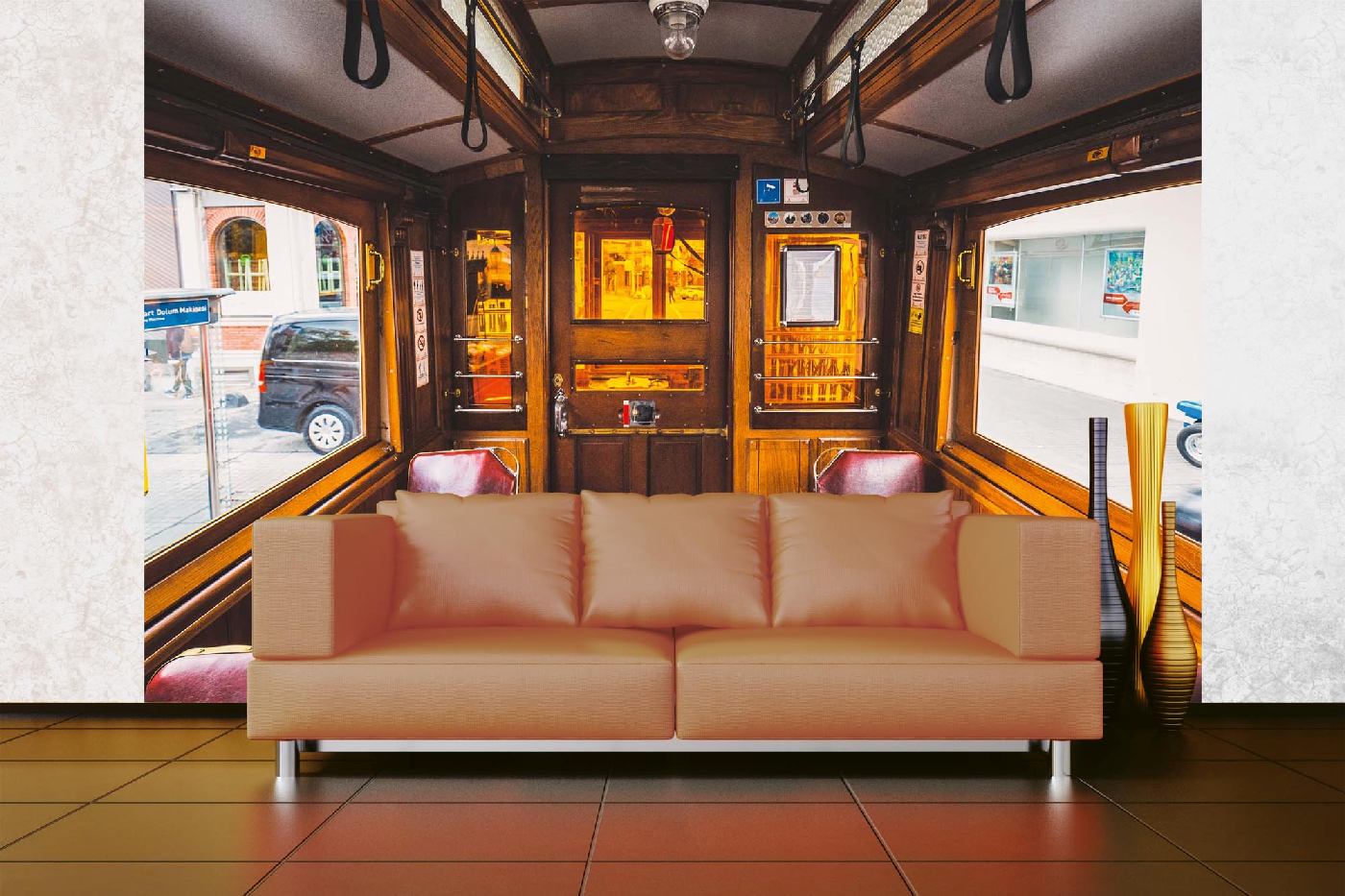 Самозалепваща се флизелинова фототапета Стар червен трамвай 375 x 250 см
