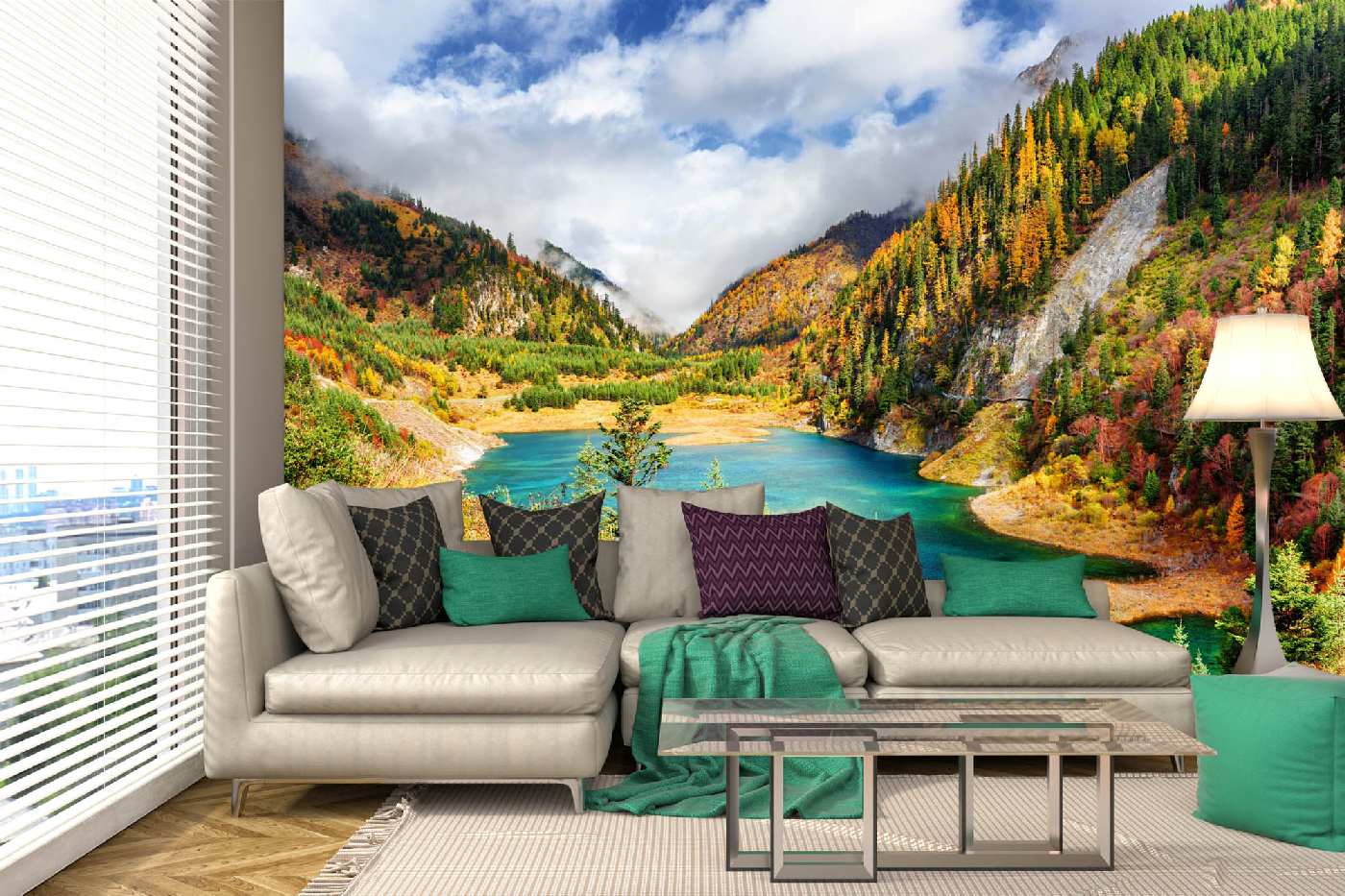 Самозалепваща се флизелинова фототапета Есенен пейзаж с езеро 375 x 250 см