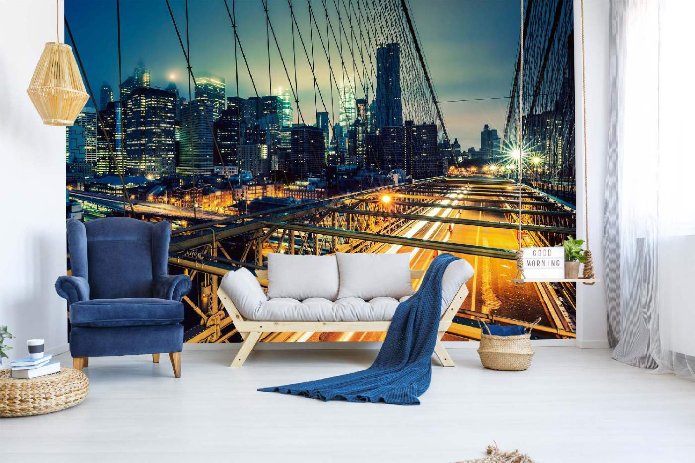 Флизелинов фототапет Бруклински мост през нощта 375 x 250 см