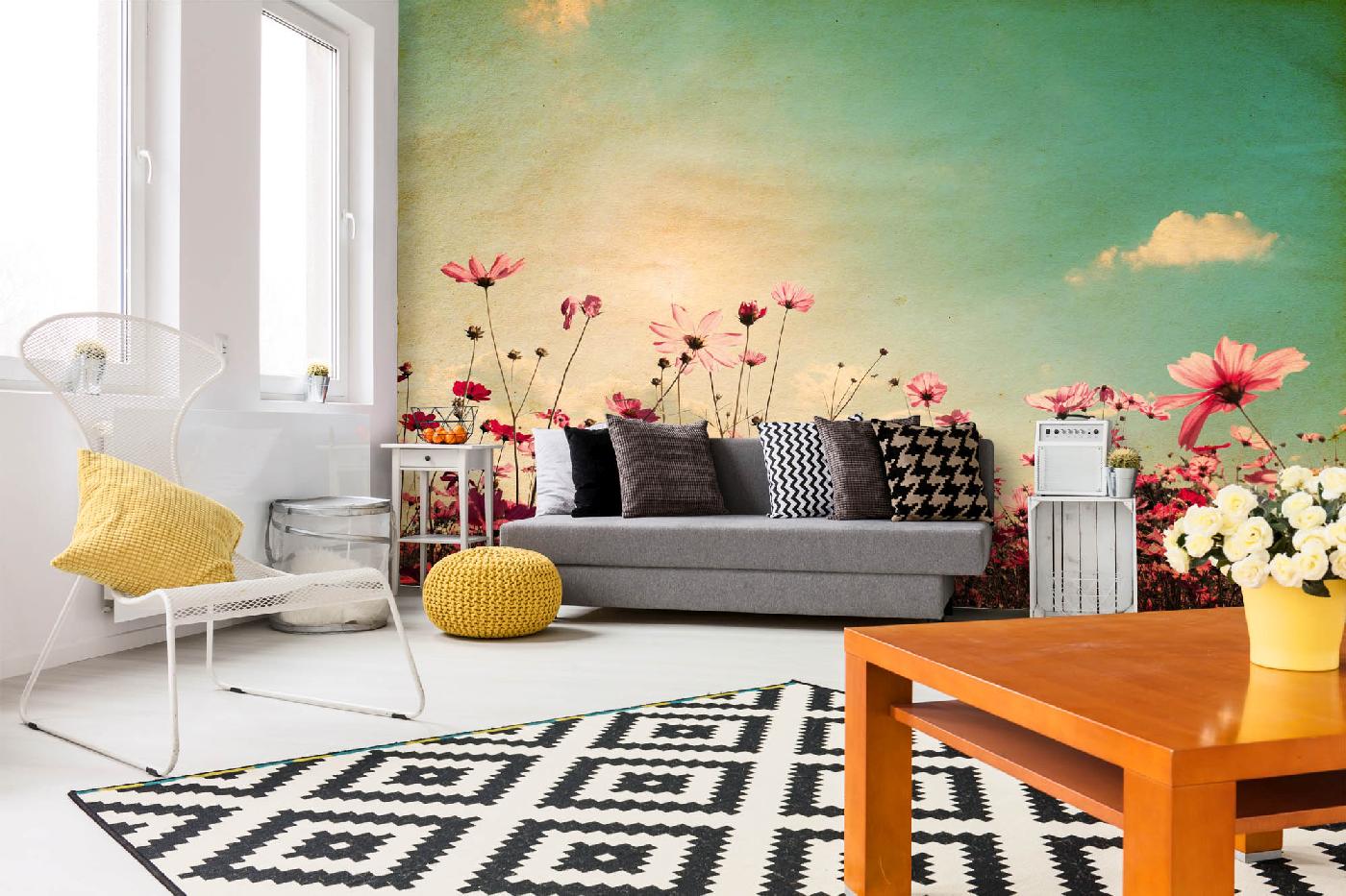 Флизелинов фототапет Винтидж цъфтяща поляна 375 x 250 см