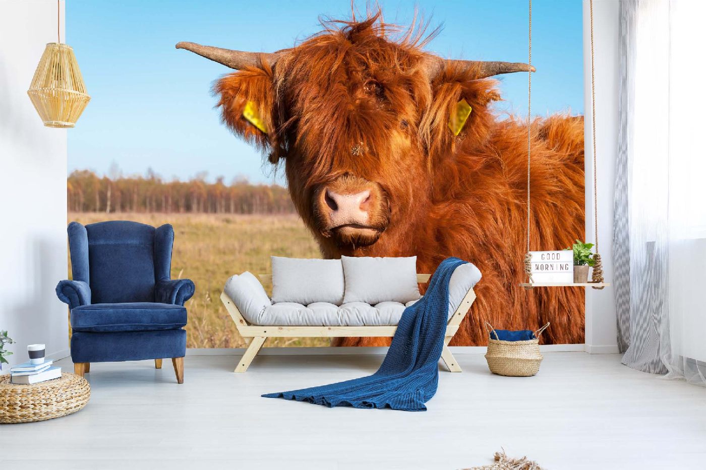 Флизелинов фототапет Дългокосместа крава 375 x 250 см