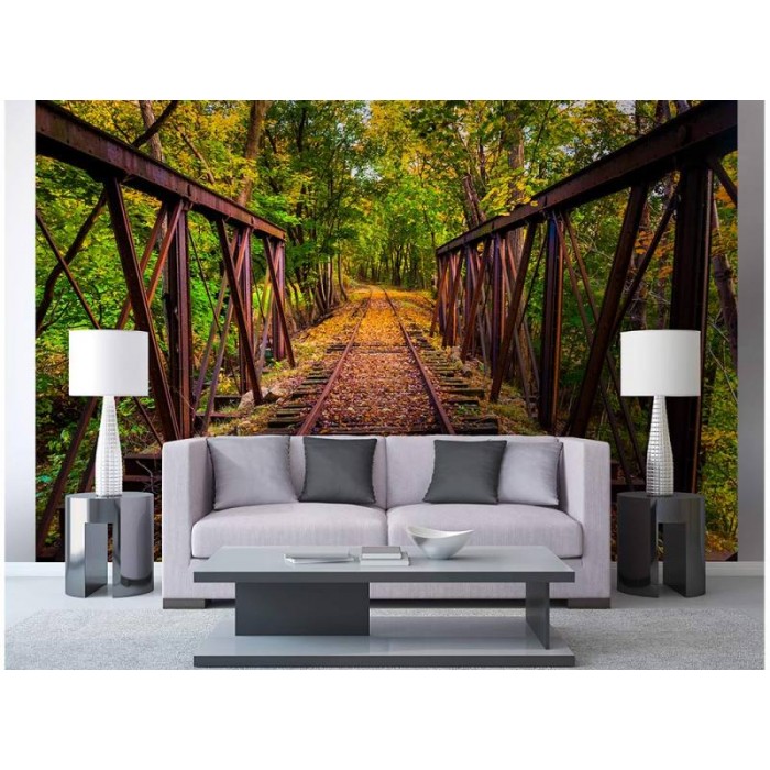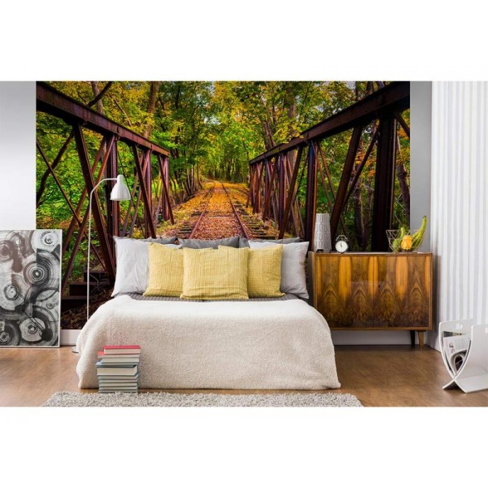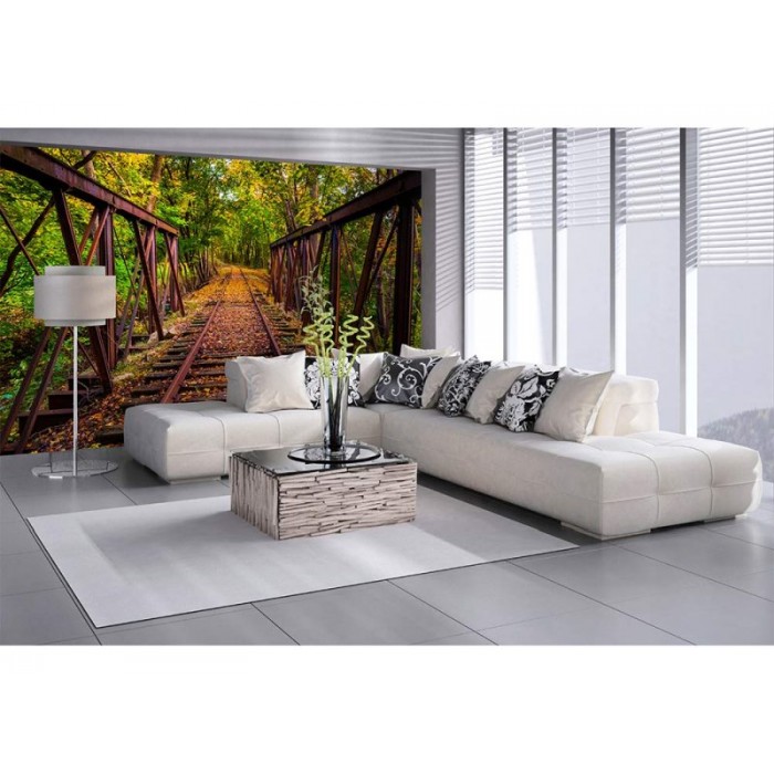 Флизелинов фототапет Железопътна линия в гората 375 x 250 см