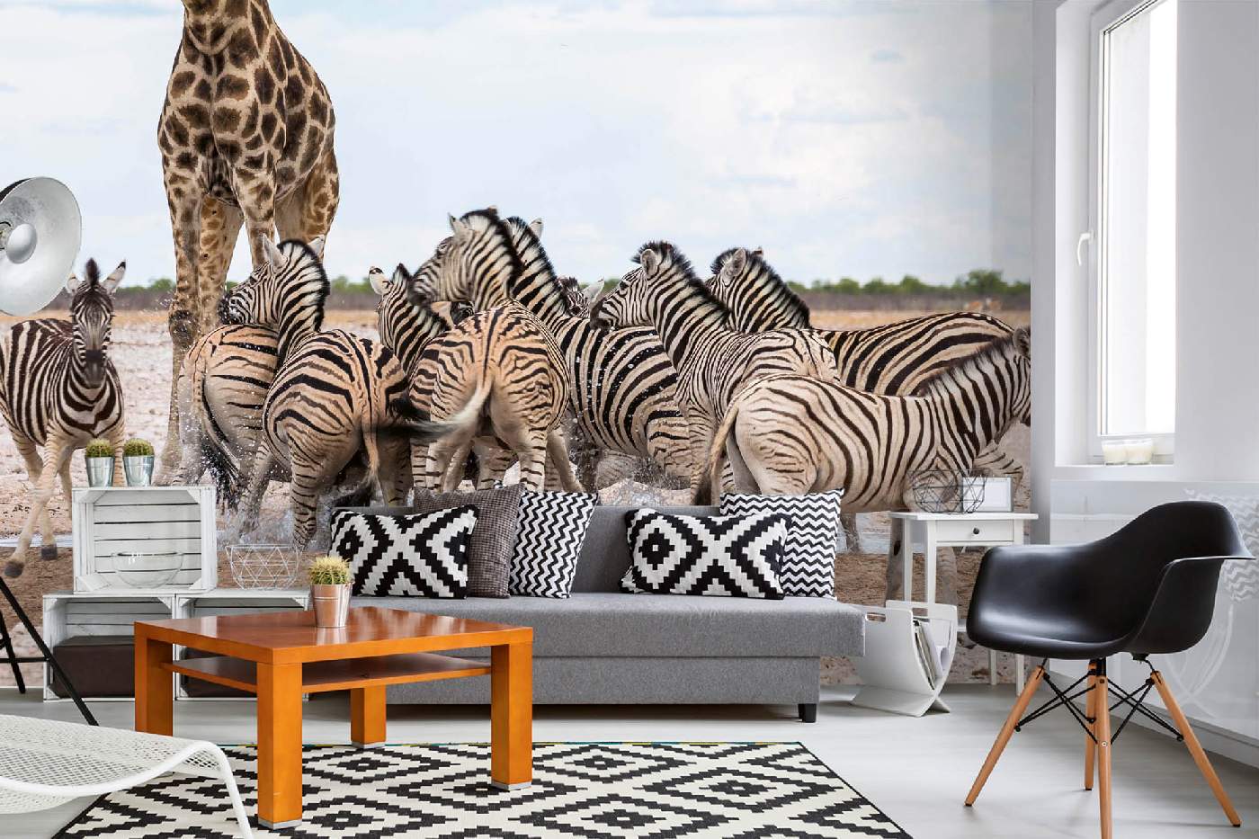 Флизелинов фототапет Зебри с жираф 375 x 250 см
