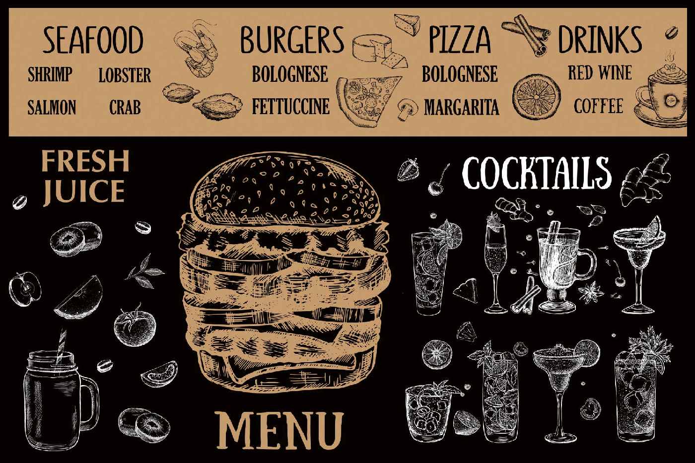 Флизелинов фототапет Меню на ресторант - черно 375 x 250 см