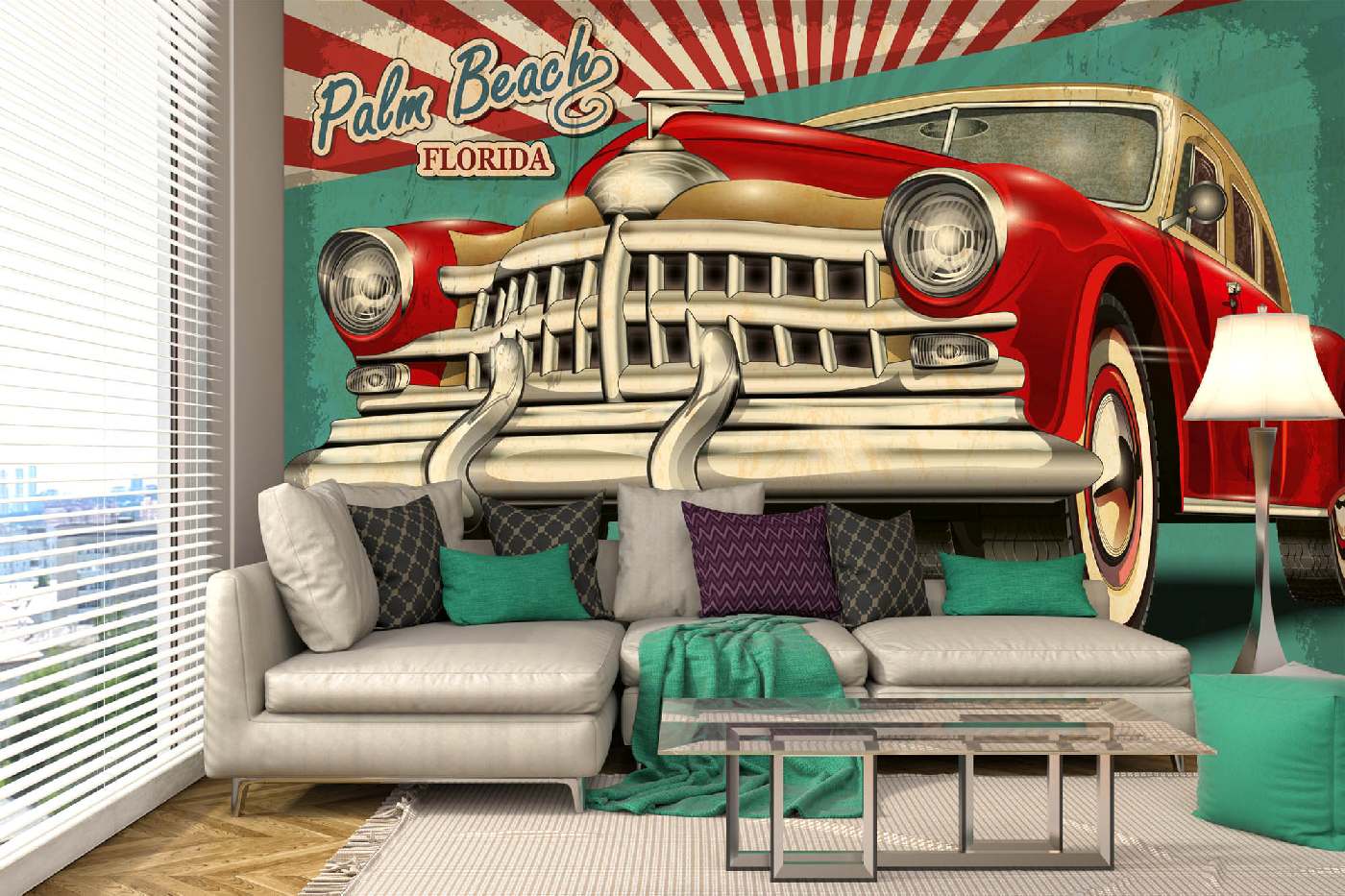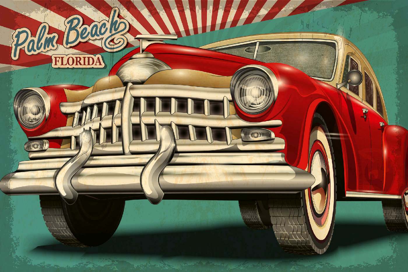 Флизелинов фототапет Ретро плакат Палм Бийч 375 x 250 см