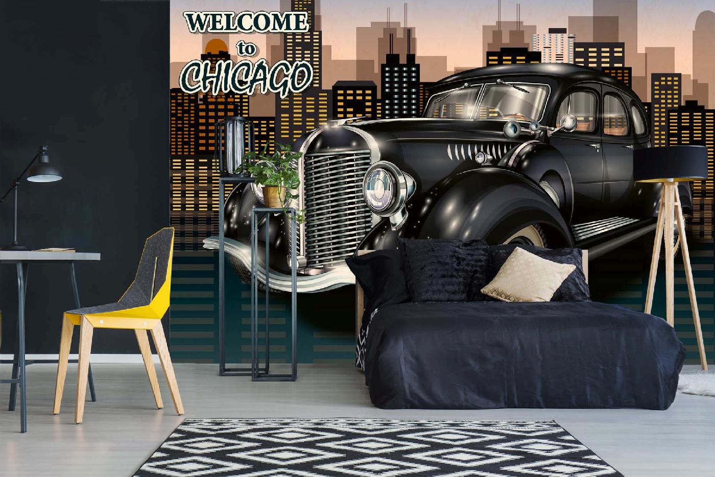 Флизелинов фототапет Ретро плакат Чикаго 375 x 250 см