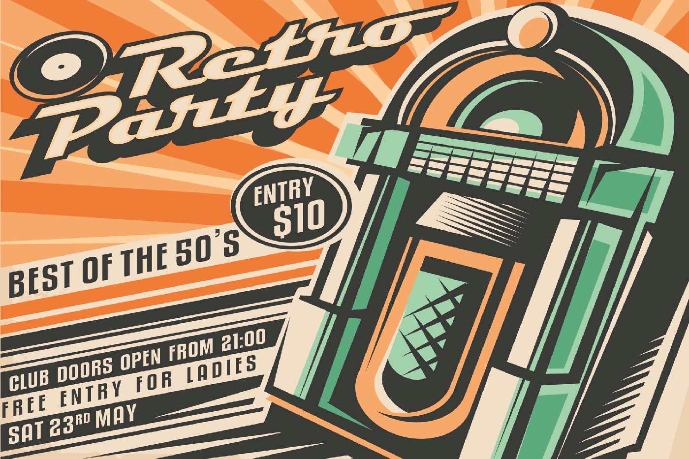 Флизелинов фототапет Ретро покана за парти 375 x 250 см