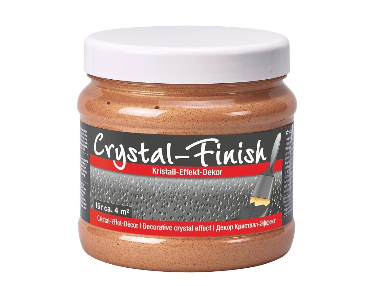 Crystal-Finish е висококачествен ефектен грунд на акрилатна основа с истински частици стъкло. Подходящ за боядисване на стени и тавани, тапети, цветни покрития, зидария, мазилки, полистирол и почти всички други повърхности в интериора.