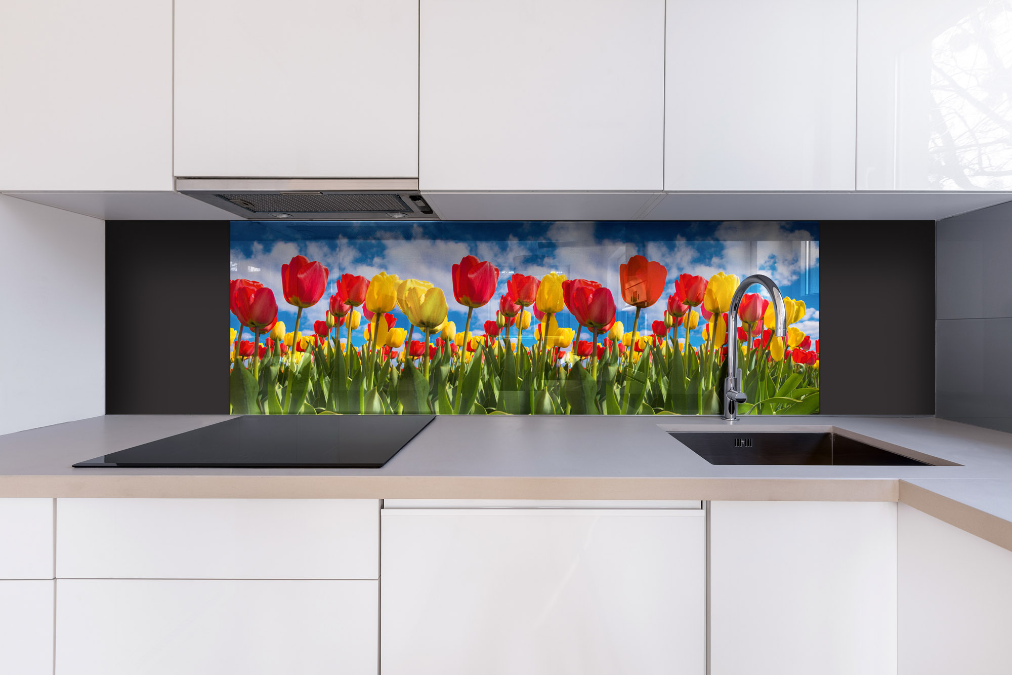 Плексиглас за кухненски гръб Поле с лалета – 180 x 60 см